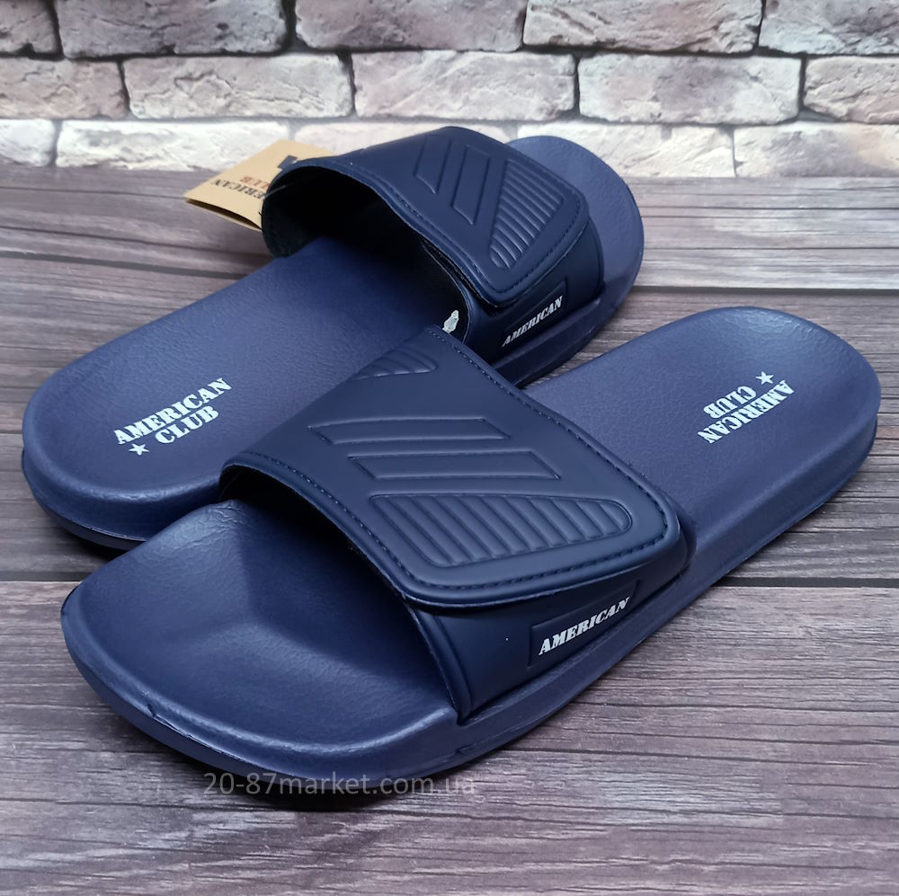 Чоловічі шльопанці, "American Club", сині, регулювання ширини стопи за допомогою липучки, легко миються та сохнуть.