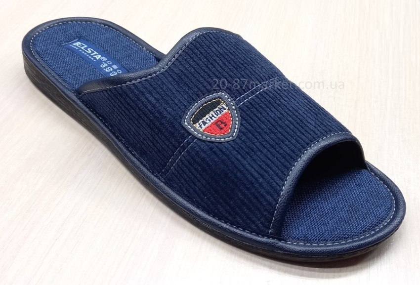 Чоловічі капці тм Белста з відкритим передом, вельвет, синій, текстильна устілка.