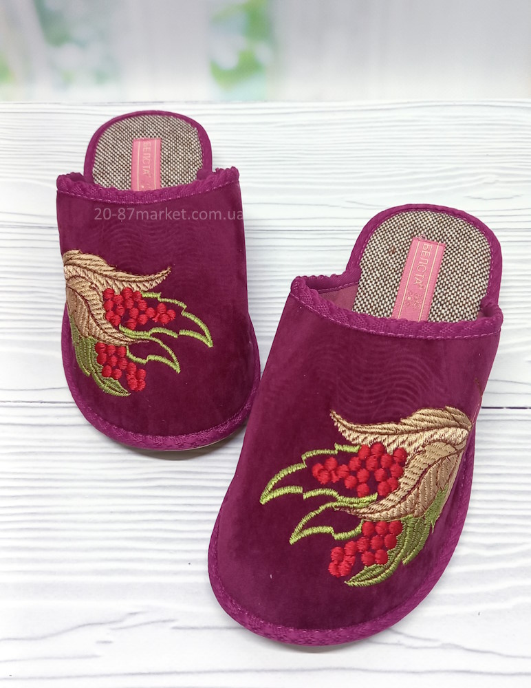 Капці тм Белста, жіночі, прикраса: вишивка. Підошва зносостійка з поліуретану, висота п'яти 2 см.