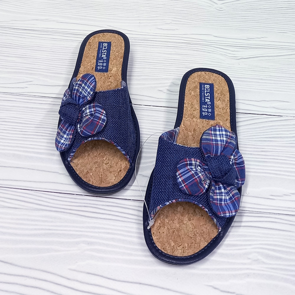 Жіночі домашні капці ТМ Белста з відкритим носком, прикрашені привабливим бантиком.