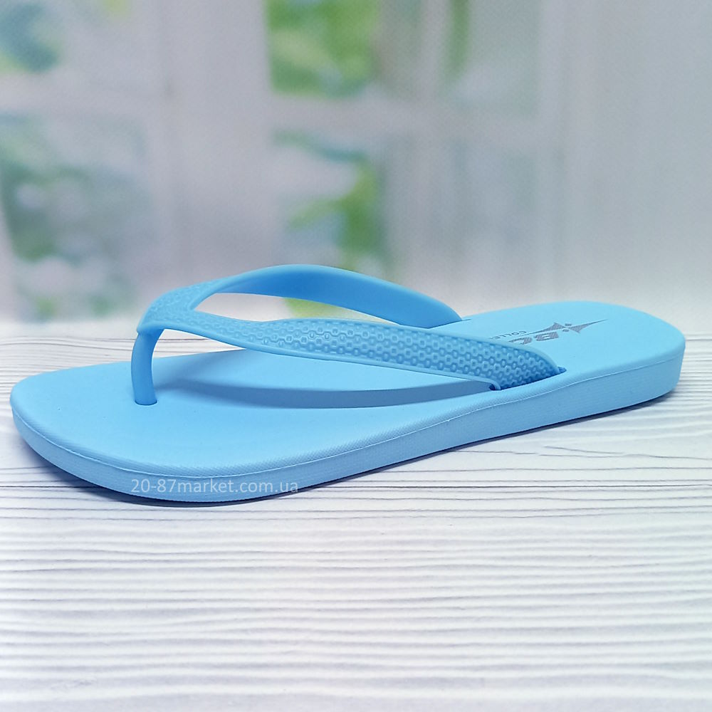 В'єтнамки жіночі, блакитного кольору. Виготовлені з міцного, легкого та екологічно чистого матеріалу - ЕВА, легко миються та швидко сохнуть.